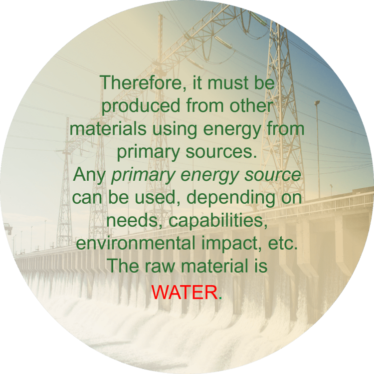 - The most important raw material for its production is water, although other natural materials can also be used, e.g. hydrocarbon fuels. However, the amount of water on Earth is unlimited, it is cheap, and the appropriate production methods are relatively simple, although they are energy demanding. Water is a “hard” molecule and a large amount of energy is required to break it down.