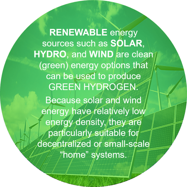 The distinctive feature of these renewable energy sources is that they generate electricity directly, which enables the production of (green) hydrogen. This primarily refers to electrolytic water splitting—a well-established electrochemical technology capable of producing high-purity hydrogen (up to 99.9%) in a single processing step—for which two main approaches exist: LTWE and HTVE (see bellow). The electrical energy used for electrolysis may, of course, also come from fossil-fuel power plants, where CO₂ emissions are unavoidable, as well as from nuclear power plants, which do not produce such emissions.