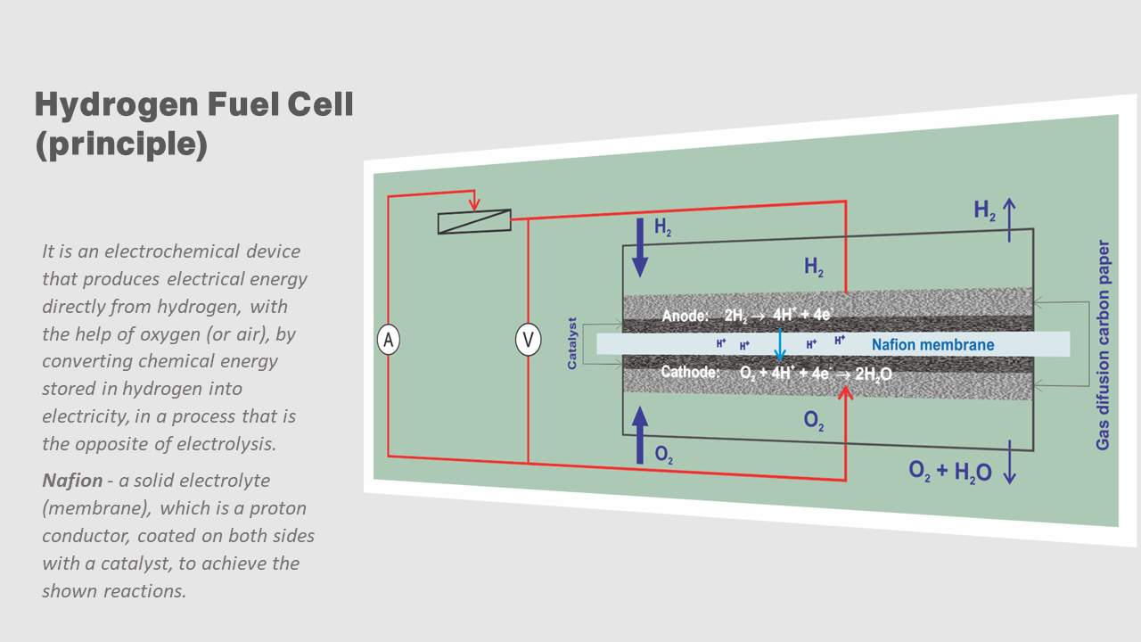 - This concept is a combination of energy manipulation in the (electrical) energy system with the help of hydrogen as a medium, for its STORAGE in periods of reduced consumption, and with the use of water electrolysis and fuel cells.